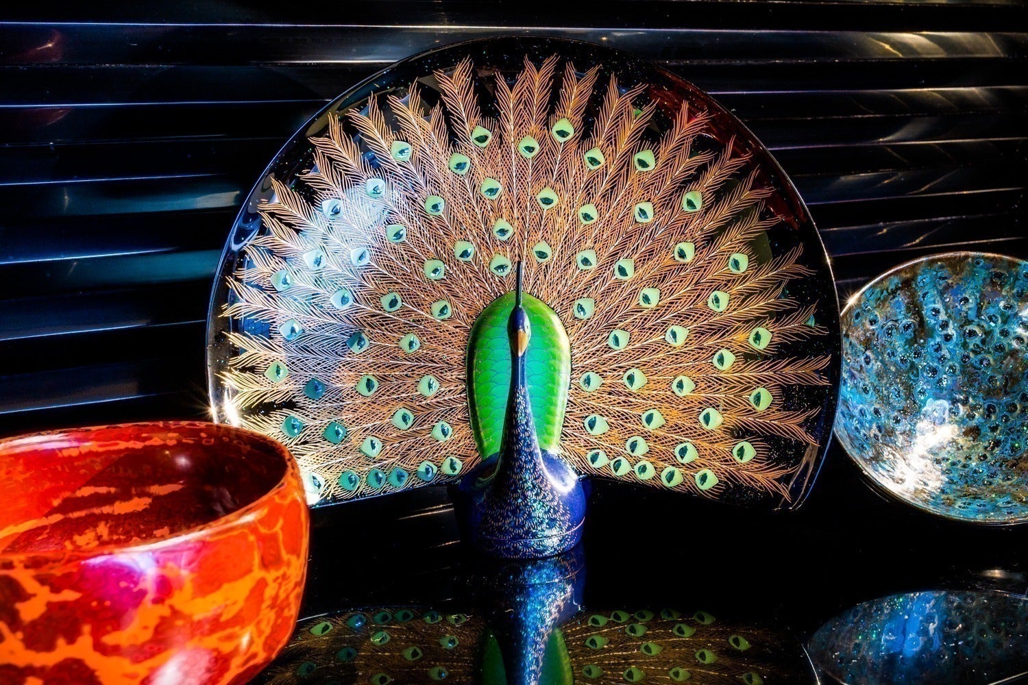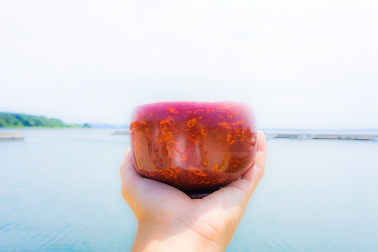 漆<うるし>は乾燥しても、作品の内部で生き続けていることから、透明感を増します。漆は年数を経て、徐々に透明になり、透けてくるなど、幾度も塗るうちに色がプリズムのように、光を吸収・分散・屈折して、はじき出し、異なる輝きを見せます。