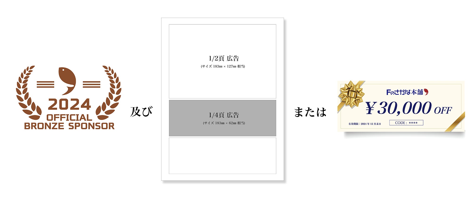 Fのさかな公式スポンサー(ブロンズ)およびFのさかな62号1/4頁広告またはクーポン券(30,000円分)◆ 500,000円
