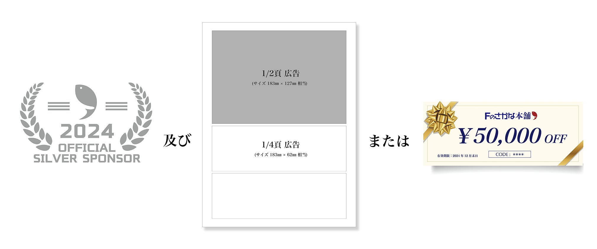Fのさかな公式スポンサー(シルバー)およびFのさかな62号1/2頁広告またはクーポン券(50,000円分)◆ 1,000,000円