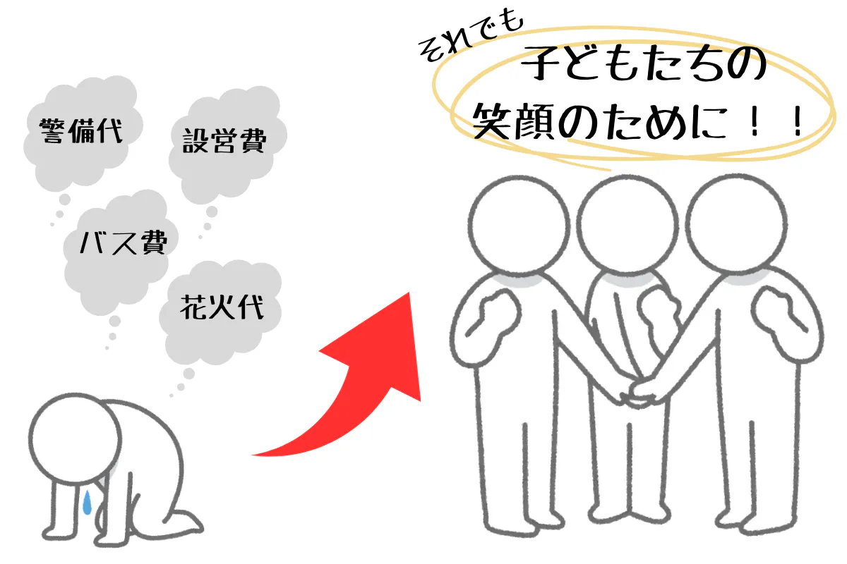 そうして分かったことは、深刻な資金不足とコロナ禍を通して失われてしまった運営ノウハウ等の問題はありますが、地域や企業の皆さまからの『応援してるから頑張ってね!』『花火が見られるの嬉しい!ありがとう』など温かい声の多さに、このお祭りがどれだけ大切なものだったの知ることができました。