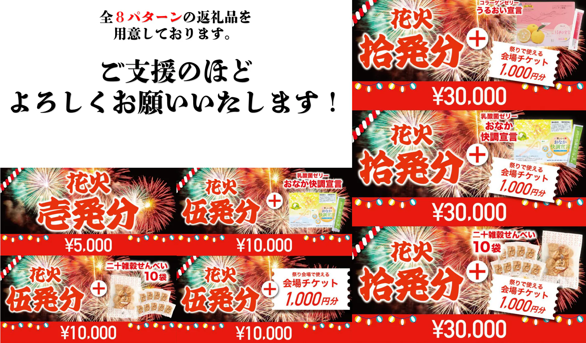 4. 「地元企業の商品セットB(健康)」:祭り終了後、地元企業の商品を発送させていただきます。
