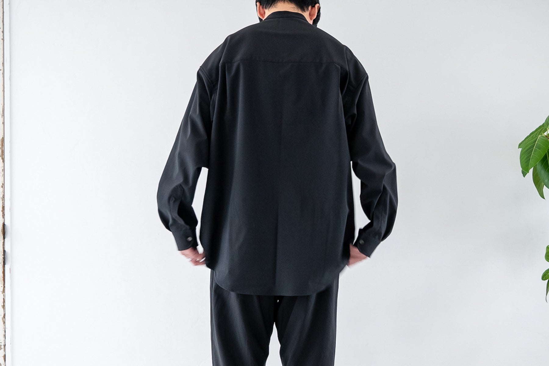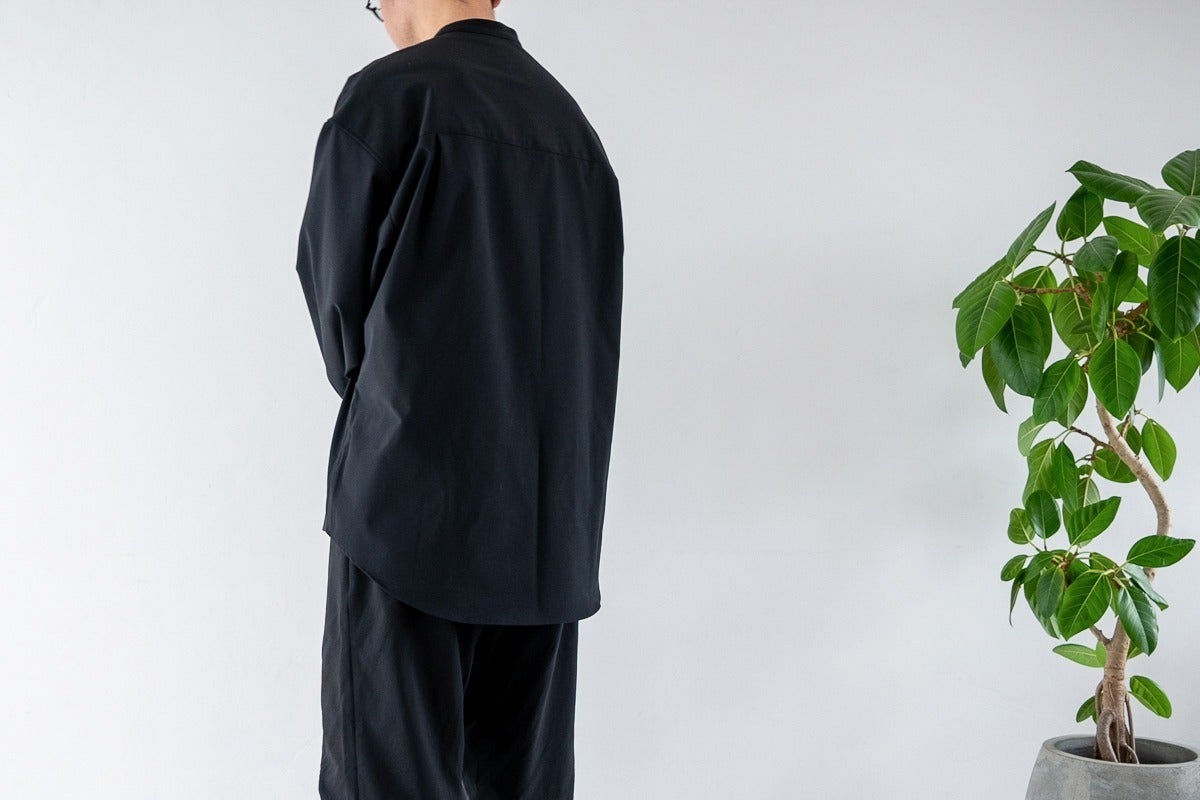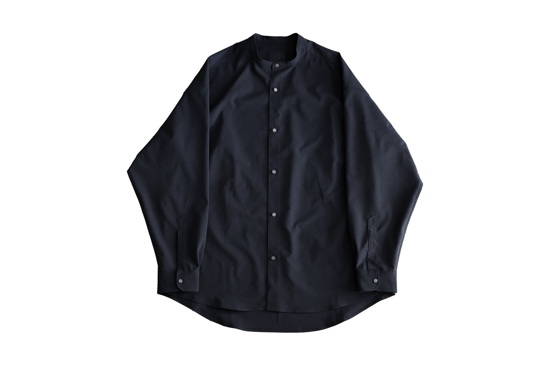 バンドカラーでオーバーサイズシルエット、ちょっとインテリなシャツです。