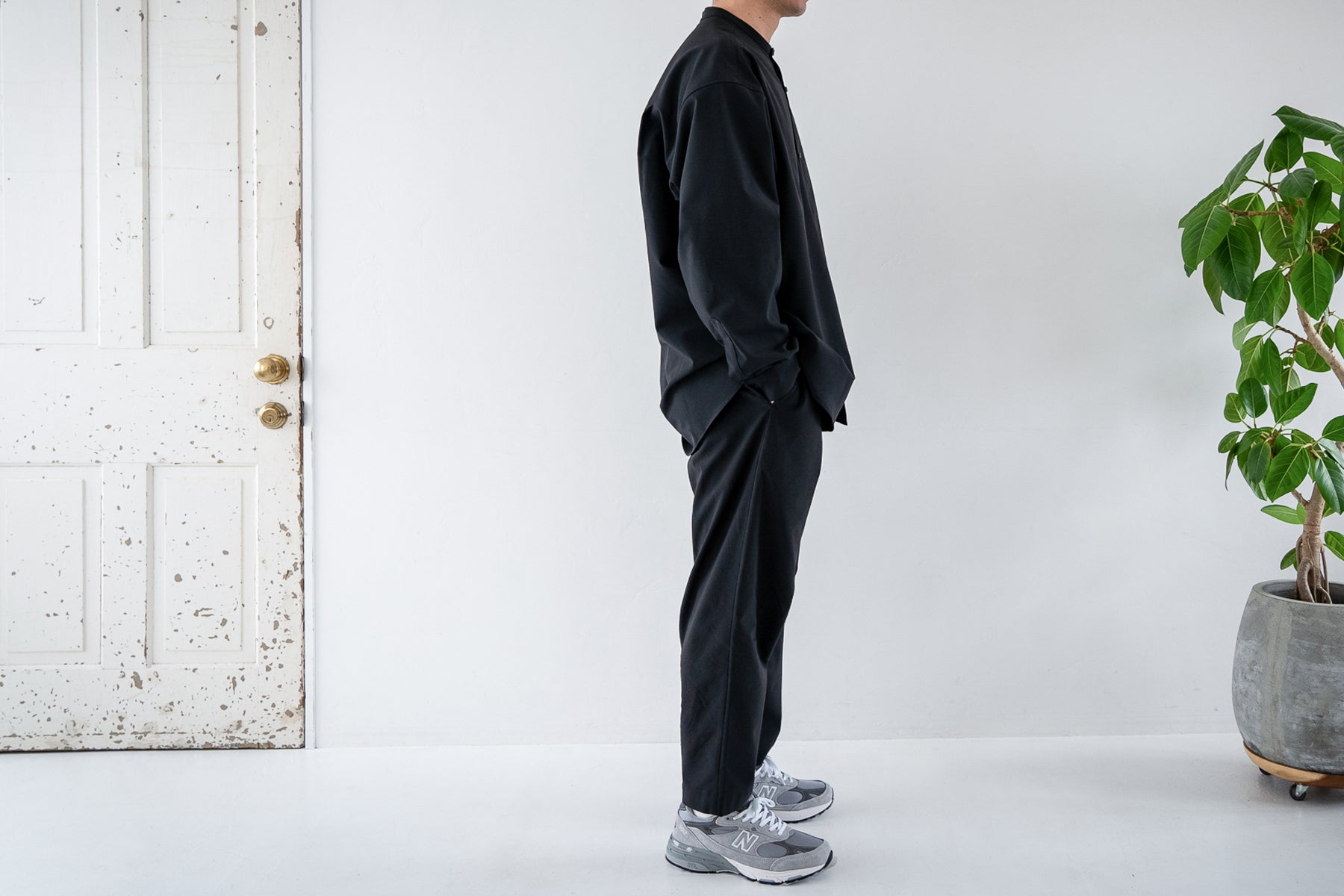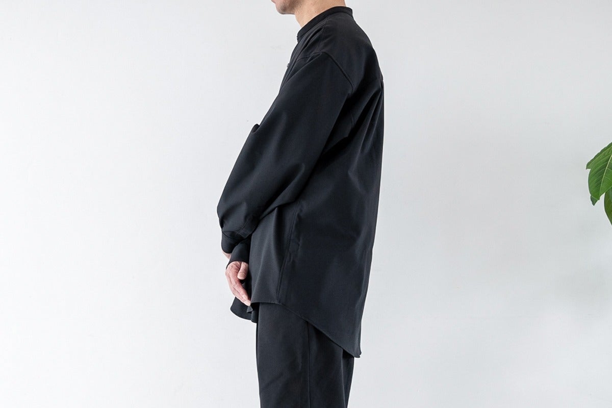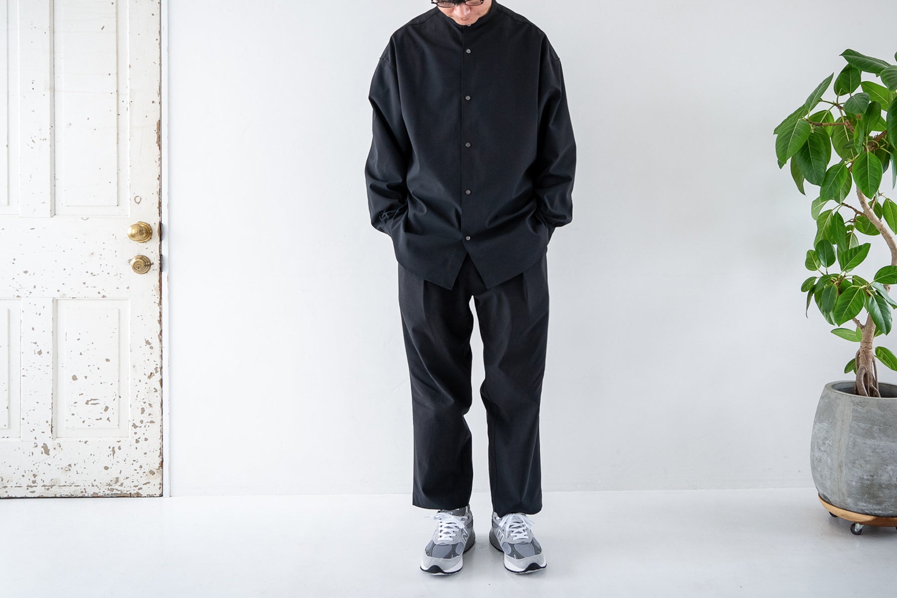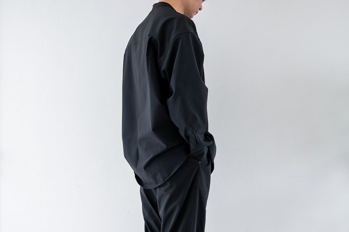 バンドカラーでオーバーサイズシルエット、ちょっとインテリなシャツです。
