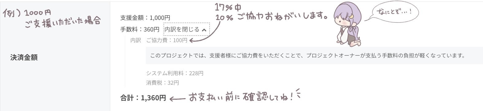 ・支援金額1万円未満→250円(税込)
