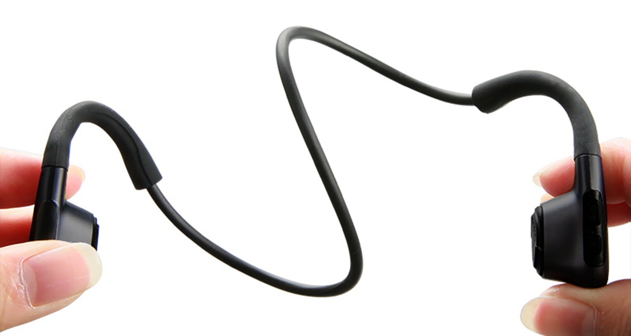 骨伝導イヤホンは鼓膜の代わりにこめかみ周辺の骨を震わせることによって、耳の穴を塞がずに音を伝えるイヤホンです。
