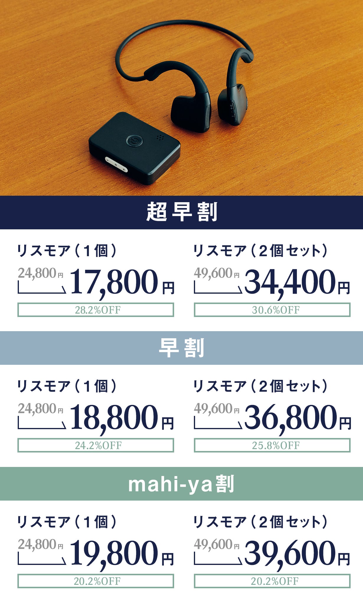 そんなとき、より気軽に取り入れられるアイテムとして開発されたのが「骨伝導イヤホン リスモア」です。