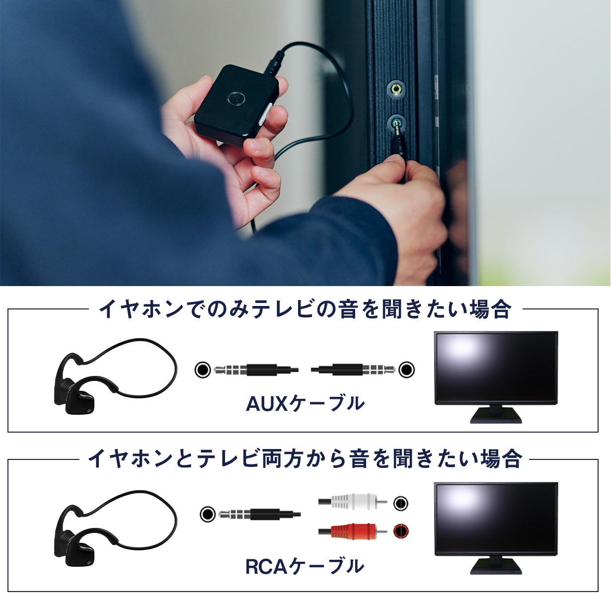 さらに、付属のコードで集音器とテレビを繋ぐことで、よりTVの音を鮮明に聞いたり、音をTVのスピーカーからは出さずに、リスモアからのみ音を出力することが可能です。