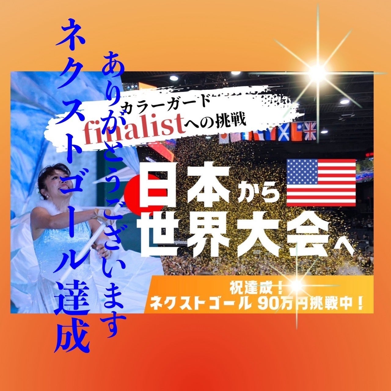 家族のような小さなチームですが、カラーガードの仲間たちに、夢を実現する事の楽しさを伝え、コロナ禍で断たれてしまった世界大会への挑戦をもっともっと増やすための先駆者となれるよう、私達は胸を張って挑戦します。