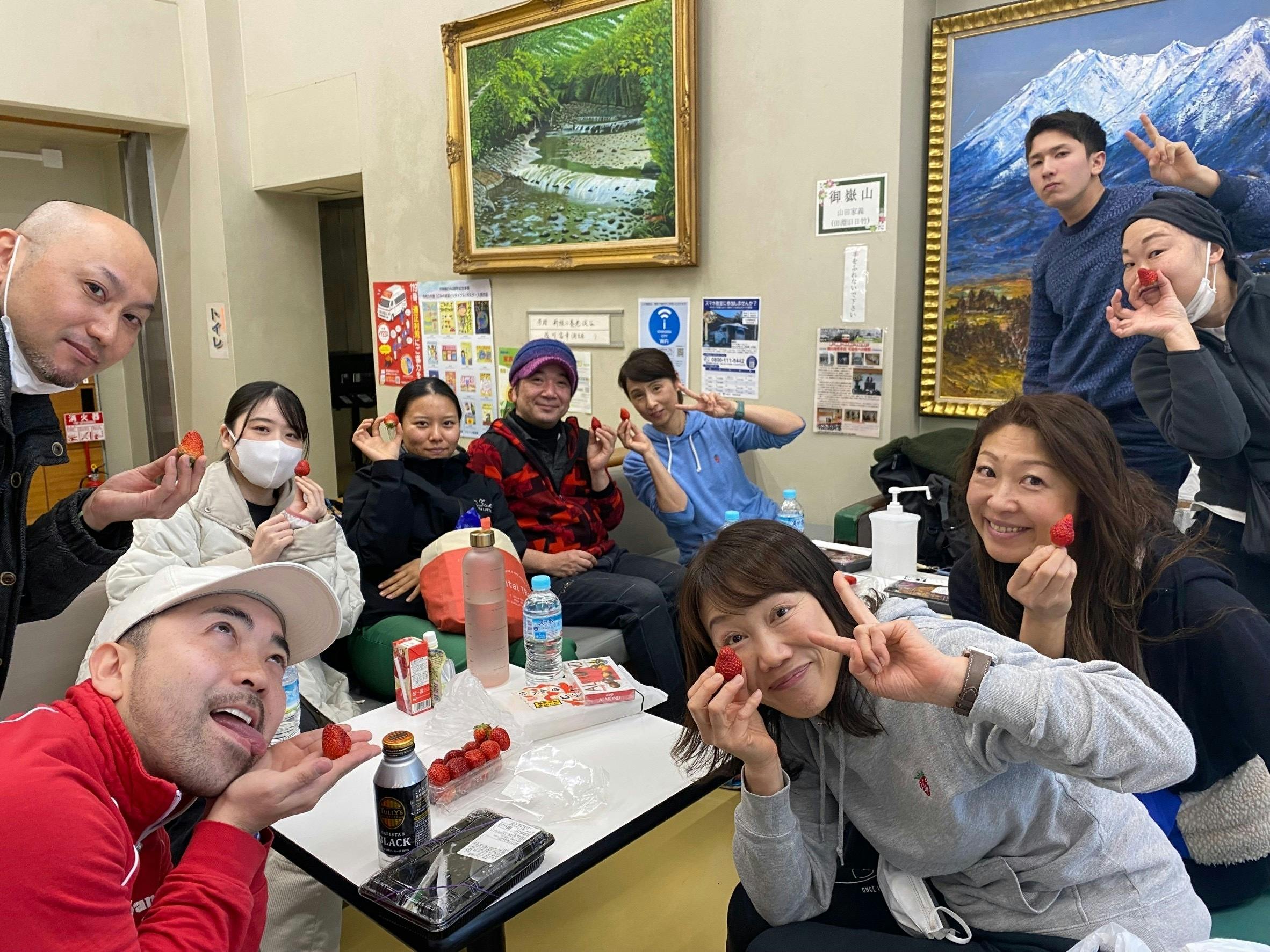 としまや弁当と言えばチャー弁(私はイカ弁が好きです♡)、ということで1000kcal超えのお弁当を食べ、差し入れのイチゴをいただき練習開始!
