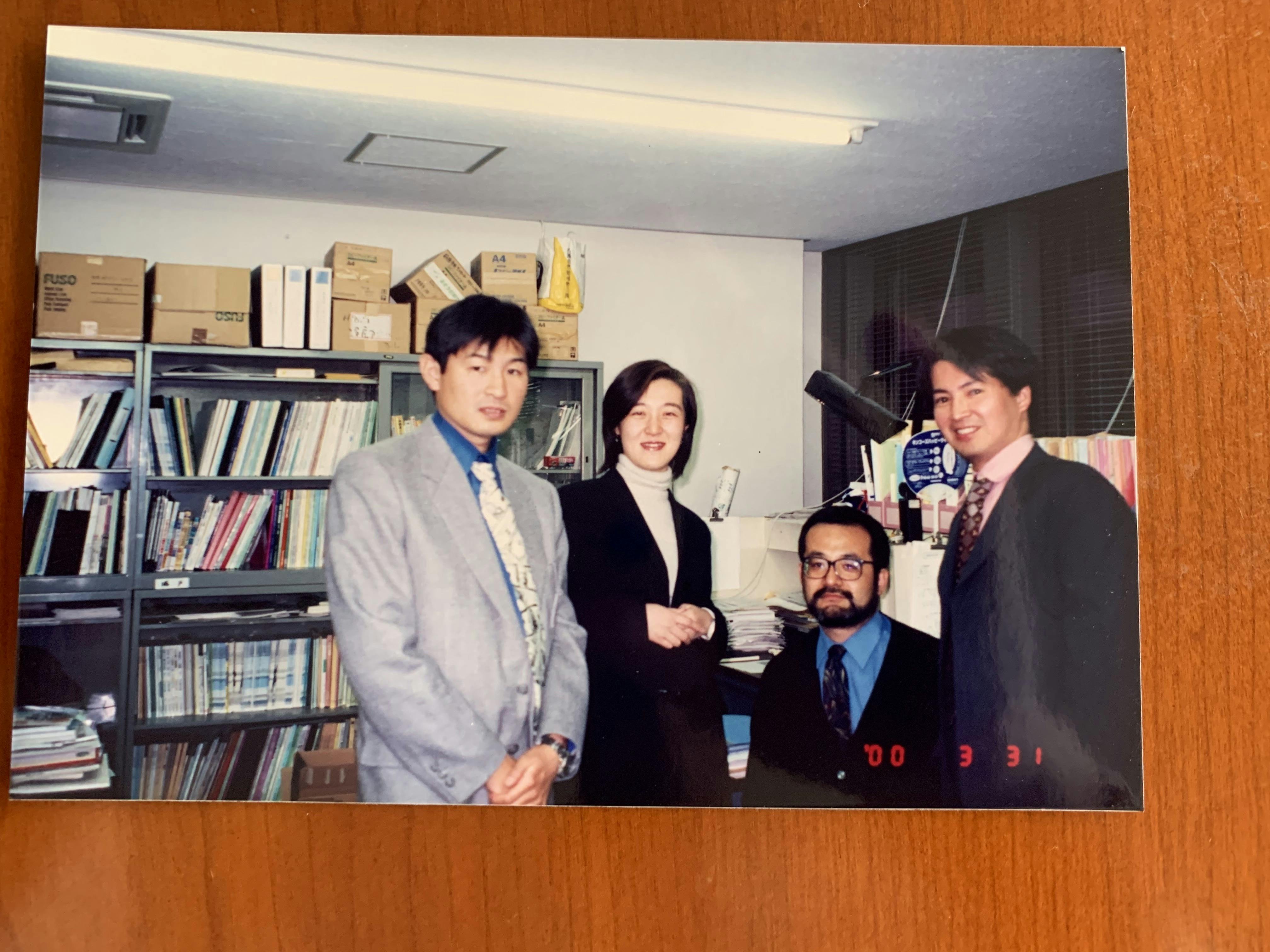 同じ写真も芸がないので、今回は事務局西田が九経調最後の出勤日に城戸先生ならびに仲間と一緒にとった写真をあげてみました。おうぢ・エマちゃん、勝手にあげちゃってごめんなさい。