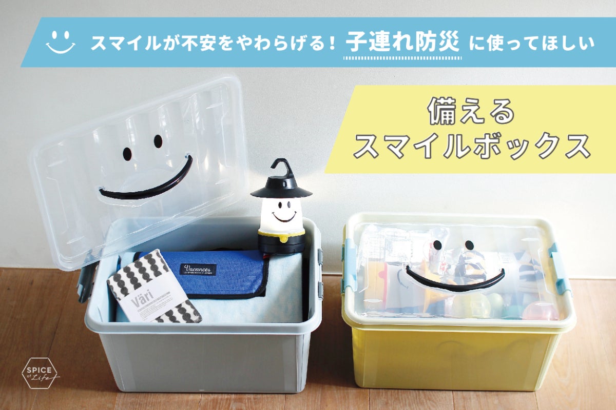 改めて今、子どもと一緒に防災の準備と家族での話し合いができたらという思いから、スマイルが不安をやわらげる子連れ防災に使ってほしい「備えるスマイルボックス」を考えました。