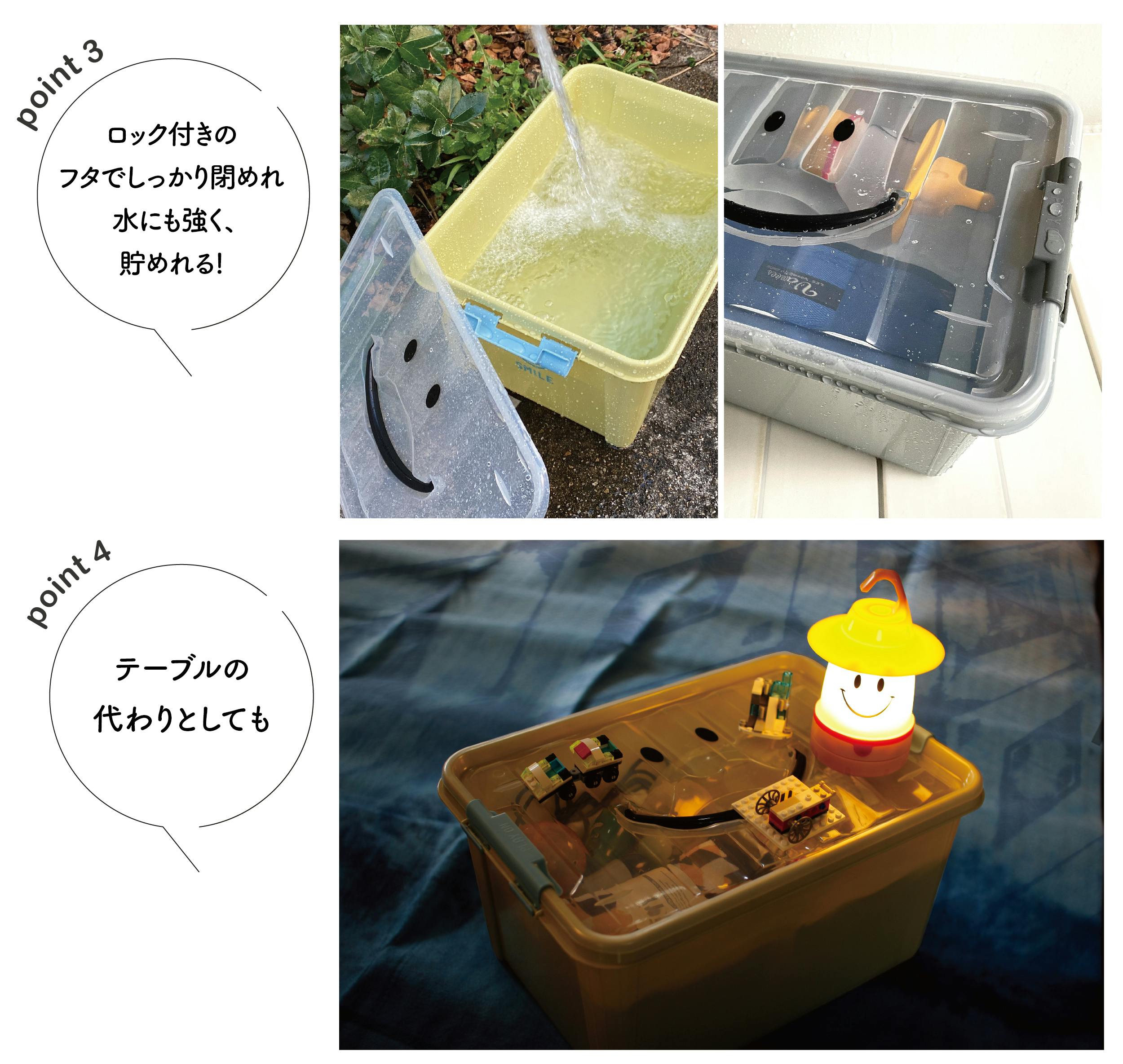 非常時に水を貯めてバケツの代わりにすることもでき、水害の際も底から中に水が染み込むこともありません。