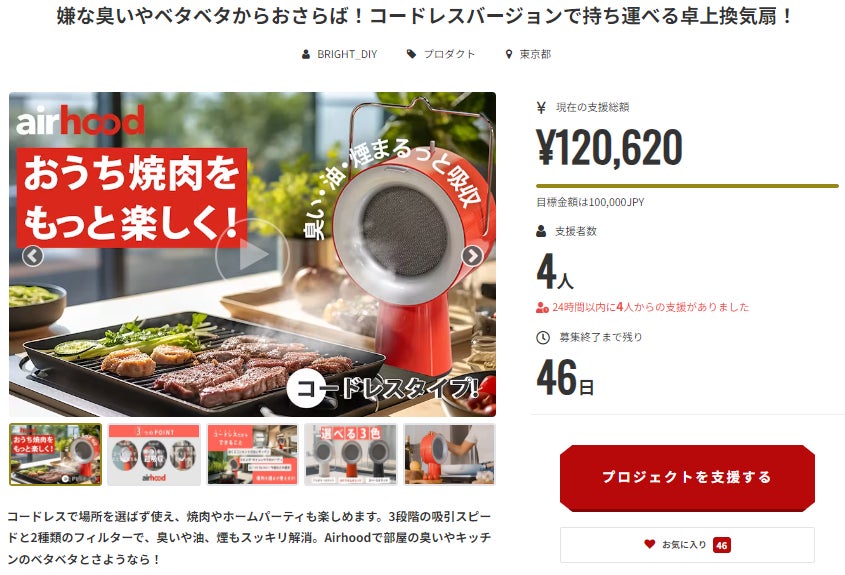 この度は「嫌な臭いやベタベタからおさらば!コードレスバージョンで持ち運べる卓上換気扇!」に支援頂き誠にありがとうございます!