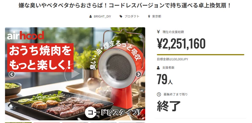 皆様にご満足いただけるリターンをお届けできるよう、全力で取り組んで参りますので引き続き、「嫌な臭いやベタベタからおさらば!コードレスバージョンで持ち運べる卓上換気扇!」をよろしくお願い致します。