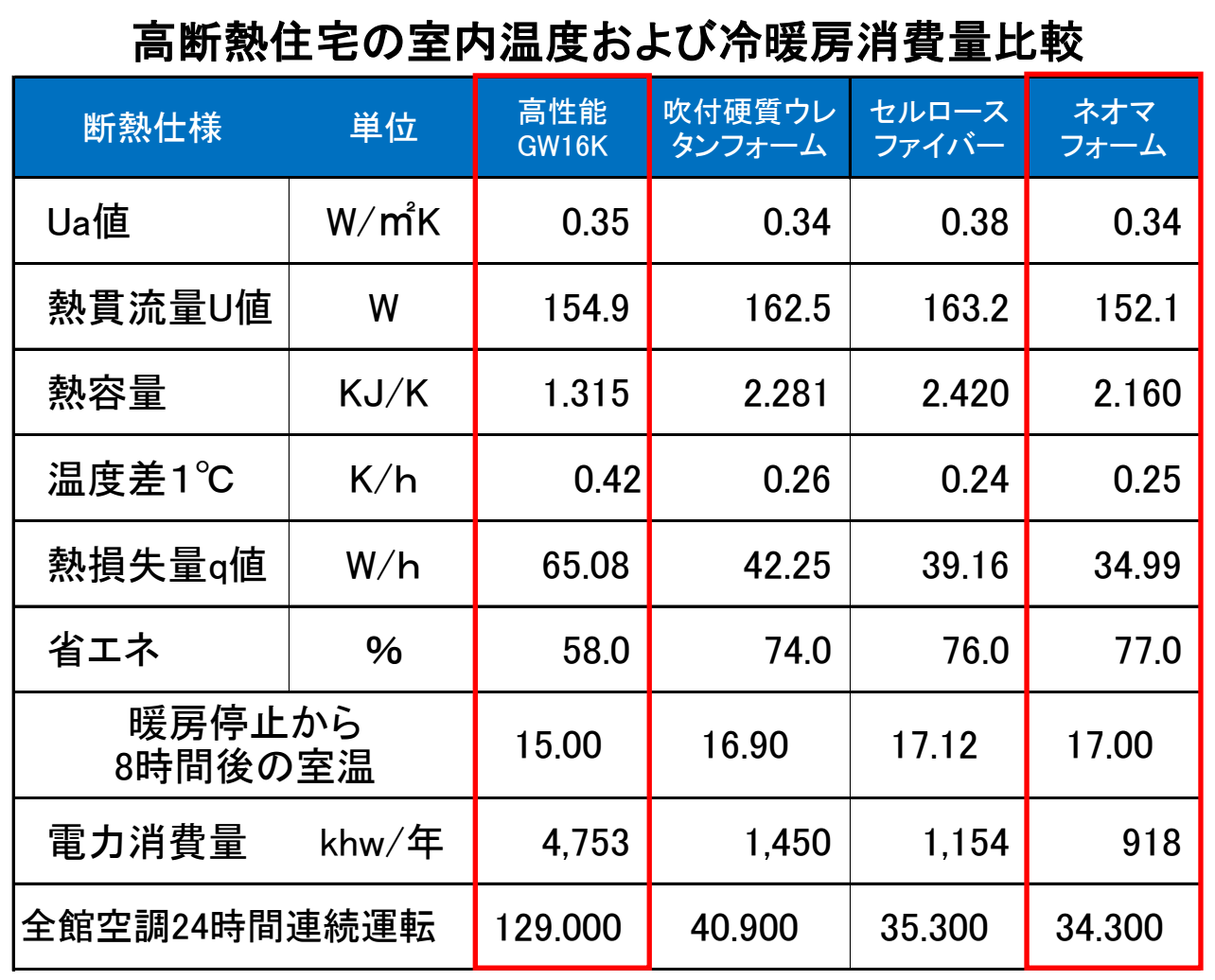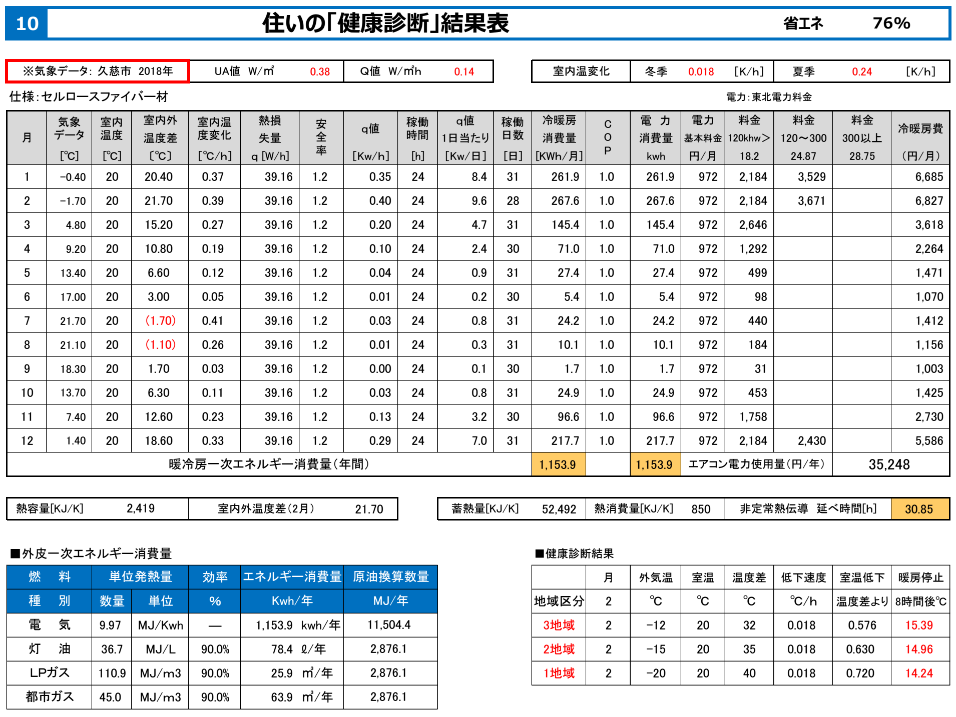 ●外皮のエネルギー保存量を考慮すると省エネ76%になりQ値0.14(W/m2・h)がUa値より少なくなります。