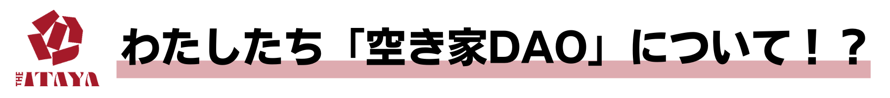 Web3.0社会における空き家流通の新たなプラットフォームであり、令和5年度国交省「空き家対策モデル事業」に採択されました。「空き家DAO」は、これまで流通が難しかった空き家を、資金やアイデアを集め、分散型自律組織「DAO」を形成し新たなコミュニティを生み出すことで、流通にのせていく革新的なプラットホームです。空き家所有者の不安解消や思いを受け継ぐユーザーの創出や、空き家の利活用を希望している方々を結びつけ、流通の活性化を図っていきます。