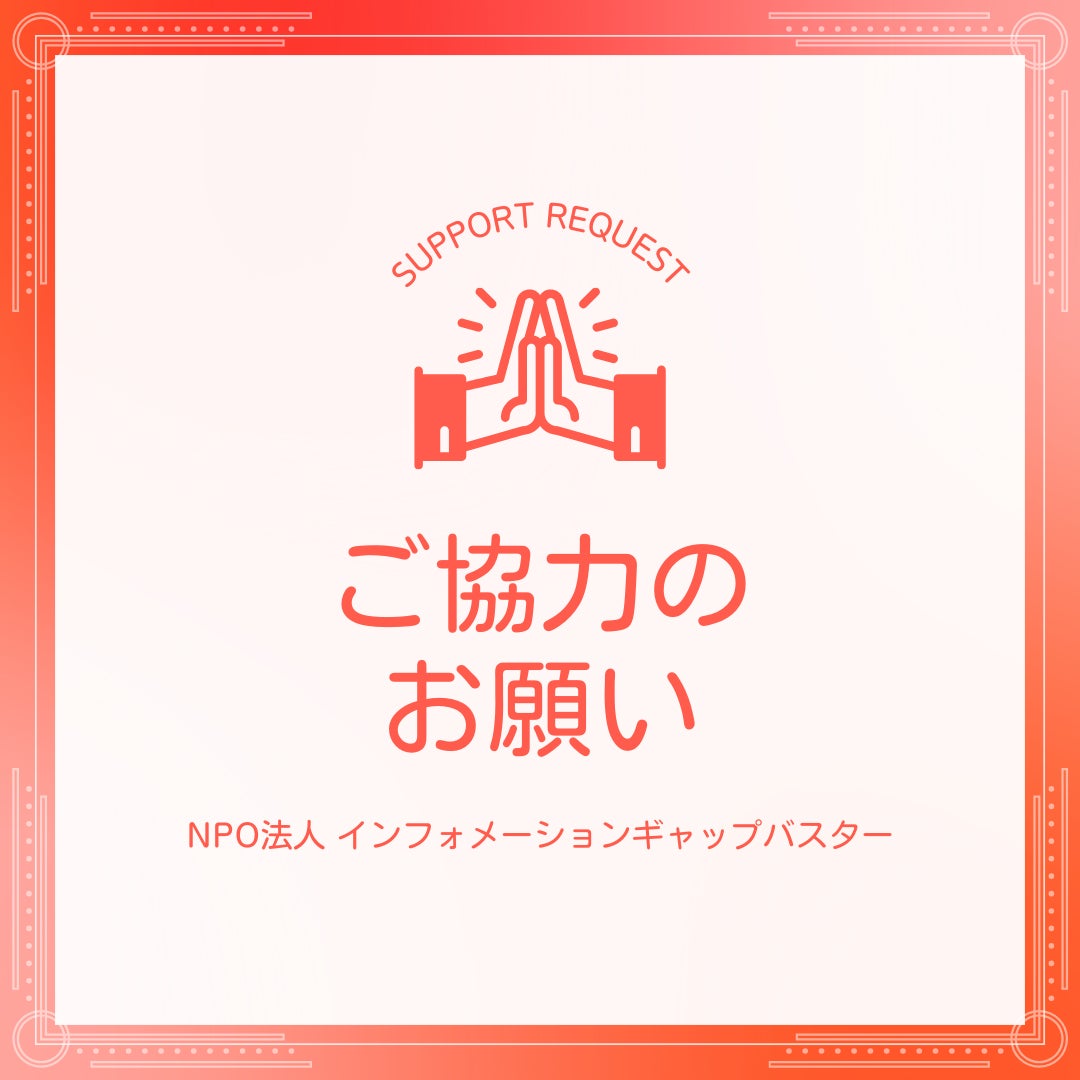 私たちのプロジェクトを広めるのを手伝ってくれませんか?はじめまして!私たちはNPO法人インフォメーションギャップバスターです。略してIGBといいます。私たちのプロジェクトをSNS(旧Twitter、Instagram、Facebook、LINE、メール・・・等)で投稿して広めてくれる仲間が必要です!私たちは、私たちのパンフレットが、これからの社会をより良くしていくことを心の底から信じています。本パンフレットの存在が広がり、ひとりでも多く手に取ってくれたら、大人だけではなく、子供をハラスメント(いやがらせ)から守ることにも繋がって、最終的に、一人一人が、基本的な情報を得ることができるのでは、と私たちは考えているからです。なぜなら、本パンフレットは、働いている場所(職場)向けですが、聴覚障害者のようにマイノリティの方が、学校などで受けるハラスメント(いやがらせ)とも共通点があると私たちは想像しています。私たちが望むことはたったひとつだけ。ハラスメント(いやがらせ)をされて、そのまま何もできずに、傷ついたままでいることしかできない聴覚障害者を減らしたいのです。あなたにはできることがある。あなたは無力じゃないんだよ。私たちのパンフレットがあなたの味方になるよ。そう伝えて、傷ついた当事者が、諦めなくていいんだ、と前を向くことができるきっかけになれたら、私たちはそれで本望です。どうか私たちのパンフレットを広めるのに、あなたのお力を貸してください。聴覚障害者だけではなく、あらゆるマイノリティのために、そして、公平な社会になって、あなたも生きやすくなるように、どうかともに動いてくれませんか?
