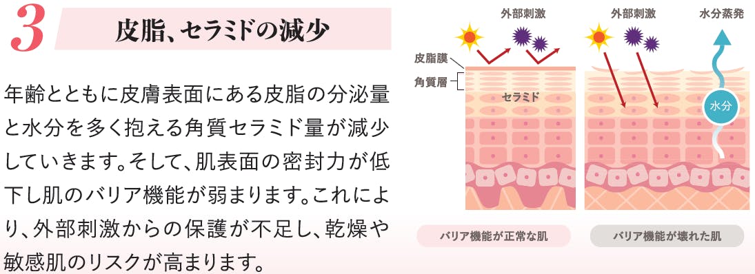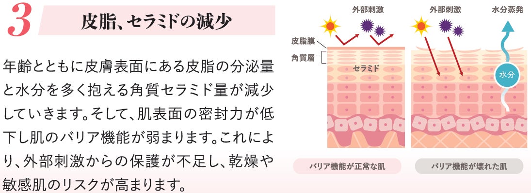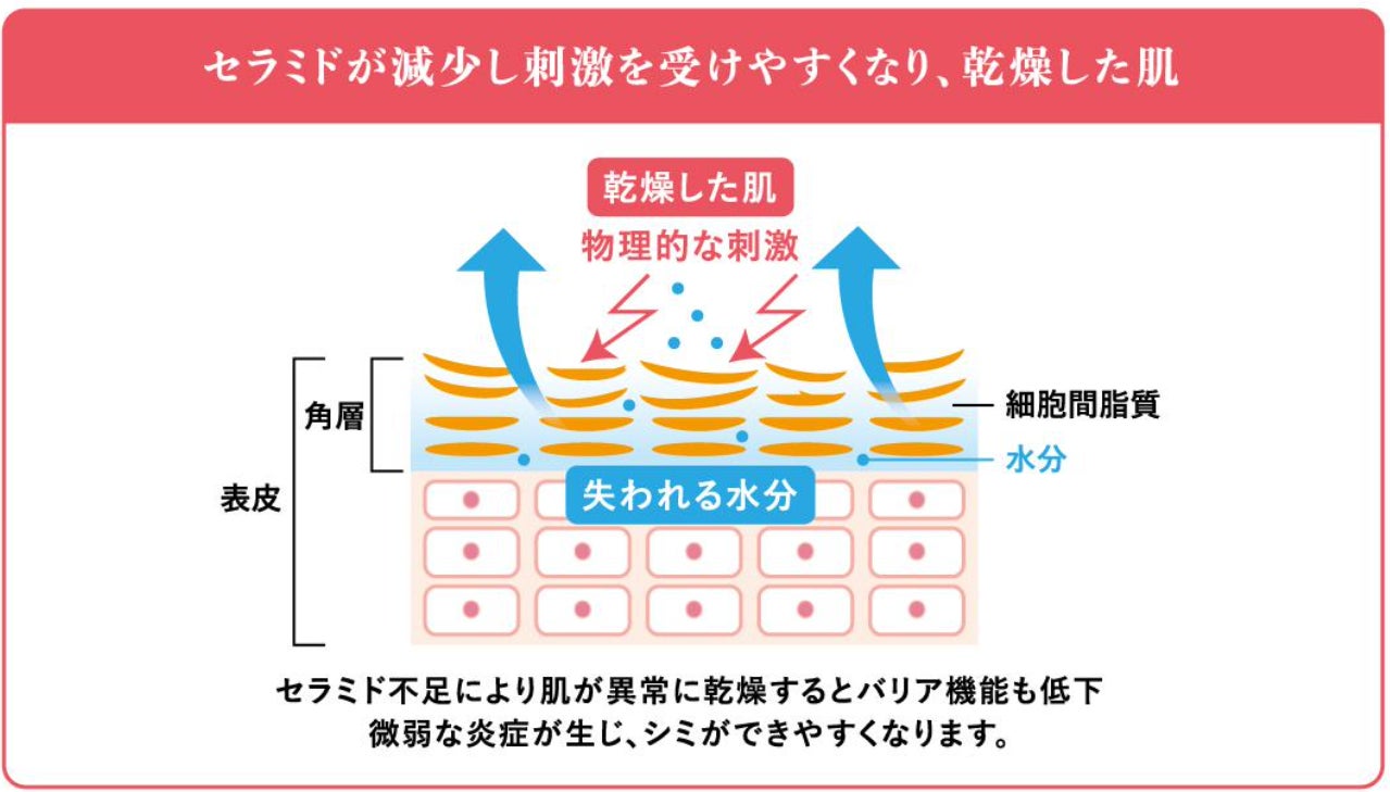 セラミドは肌へ潤いを与え、外部刺激から肌を守るために必要な成分です。
