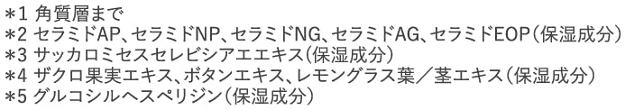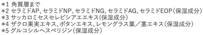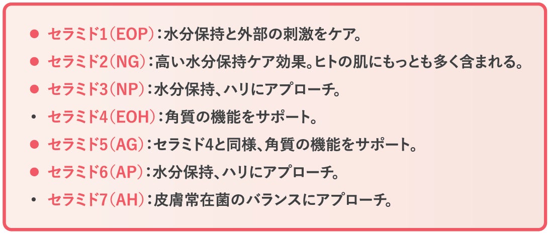 5種類のセラミドの役割はそれぞれ異なりますが、乾燥角質に潤いを与え、外的刺激から肌を守ることが知られています。