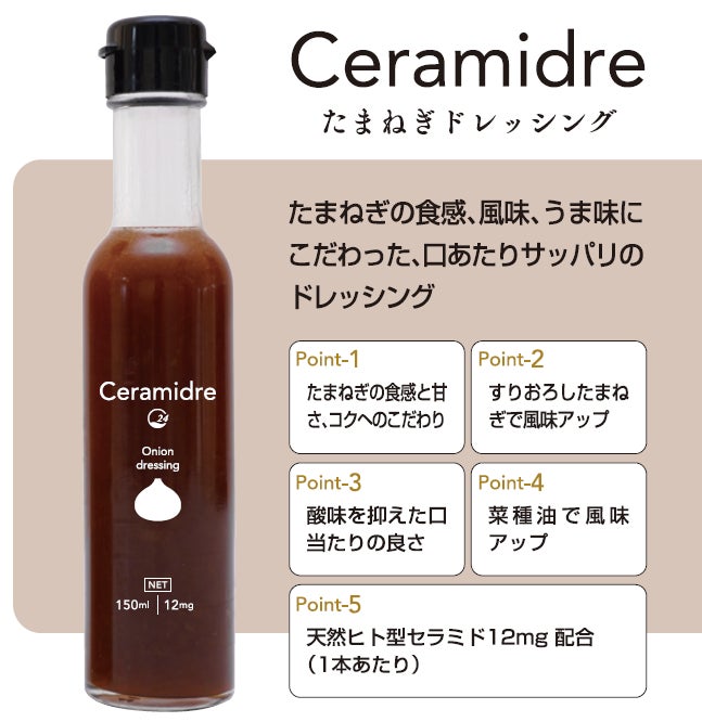 セラミドレは、URUOINの成分にも使用している「天然ヒト型セラミド(C24長鎖型)」が配合されたドレッシングです。この天然ヒト型セラミドは、人間の肌に存在するセラミドと同等の構造をしており、もちろん食べることだってできるんです。