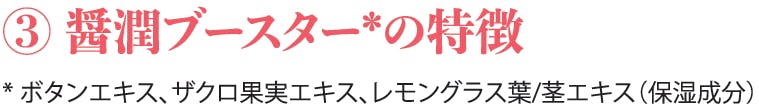醤潤酵母エキスの美肌効果をサポートし、肌の透明感、ハリと弾力へ導く植物エキスの複合体です。