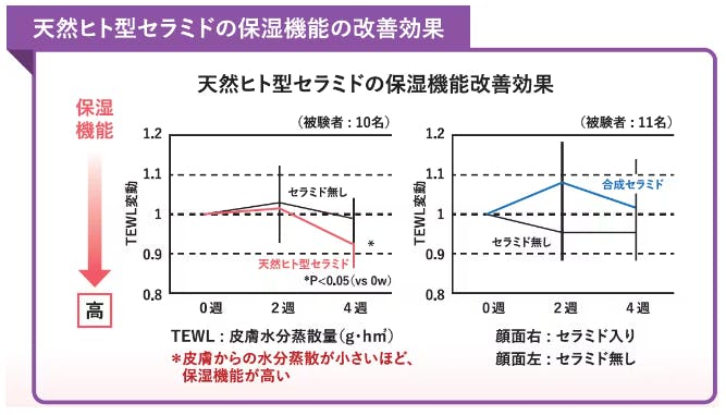 5種類のセラミドの役割はそれぞれ異なりますが、乾燥角質に潤いを与え、外的刺激から肌を守ることが知られています。