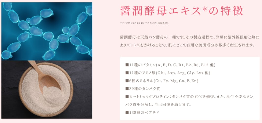その製造過程で、酵母に紫外線照射と熱によりストレスをかけることで、肌にとって有用な美肌成分が数多く産生されます。