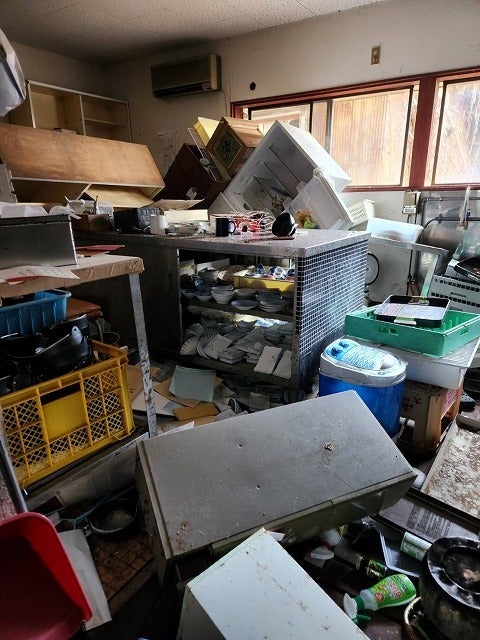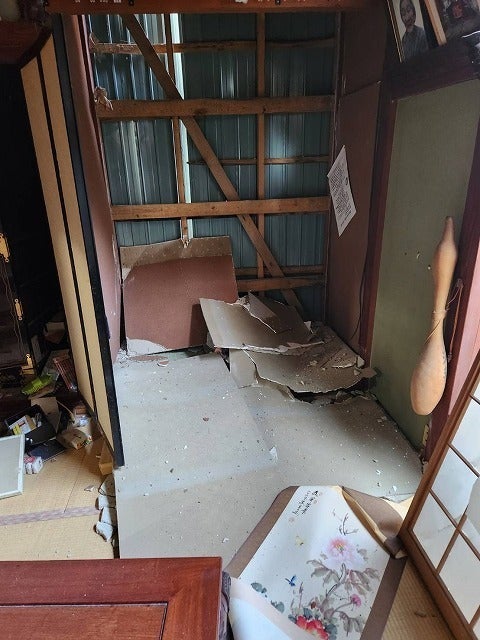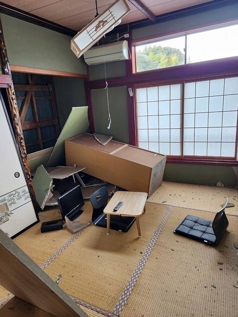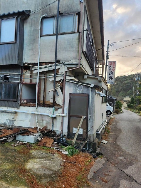 令和6年に発生した能登半島地震により、当宿も大きな被害を受けました。建物については、傾きや外壁の破損、屋根瓦の落下、内壁や設備にも大きな被害が出ています。
