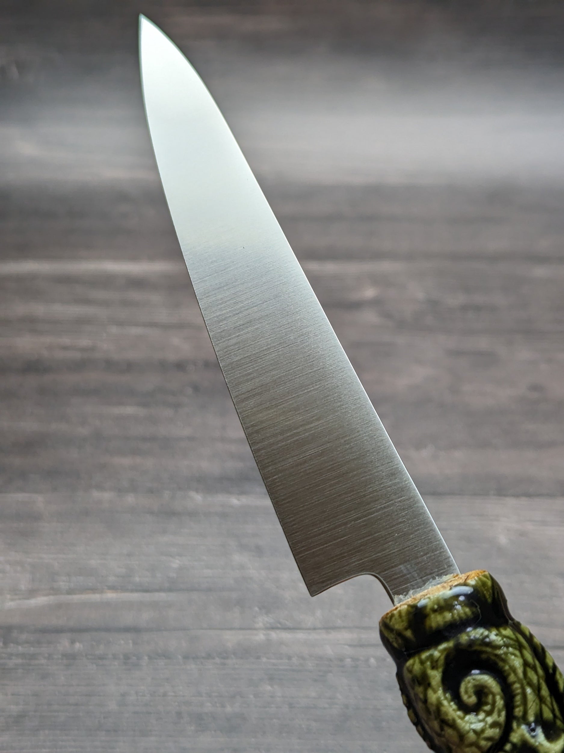 そんな中、今までにない新たな包丁柄の開発に着手し、瀬戸焼の包丁柄を用いた『ORIBE庖丁(ORIBE KNIFE)』の製品化に成功しました!