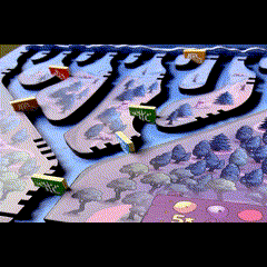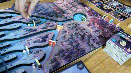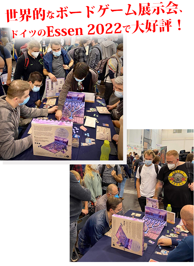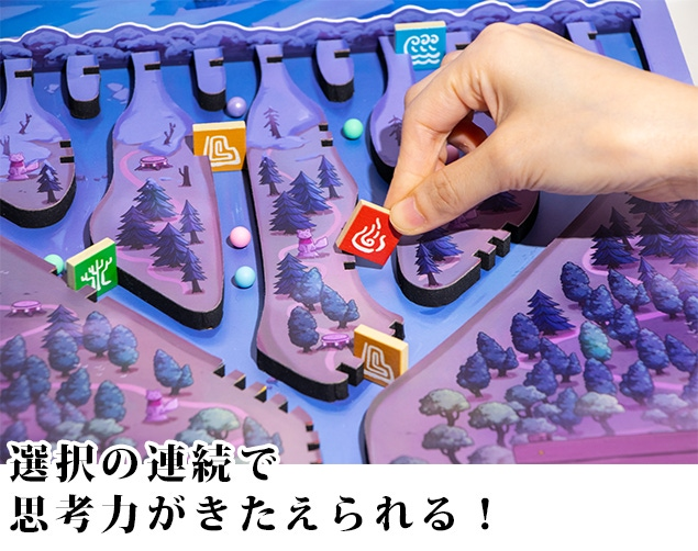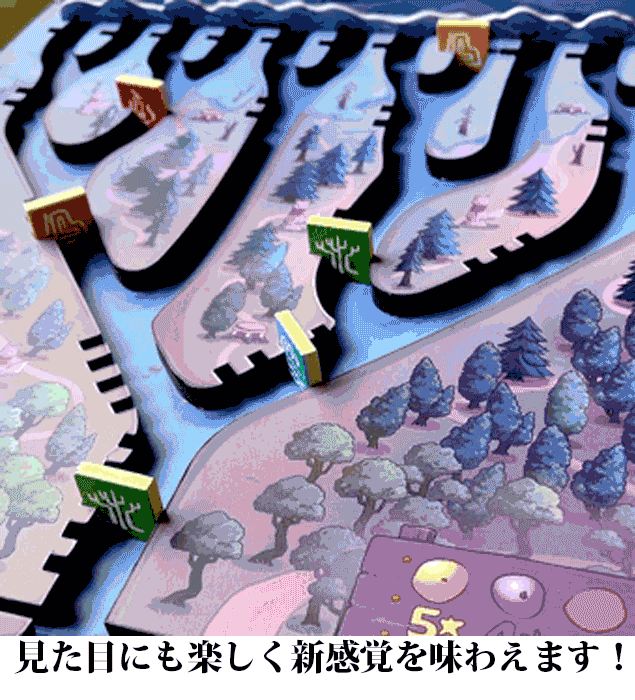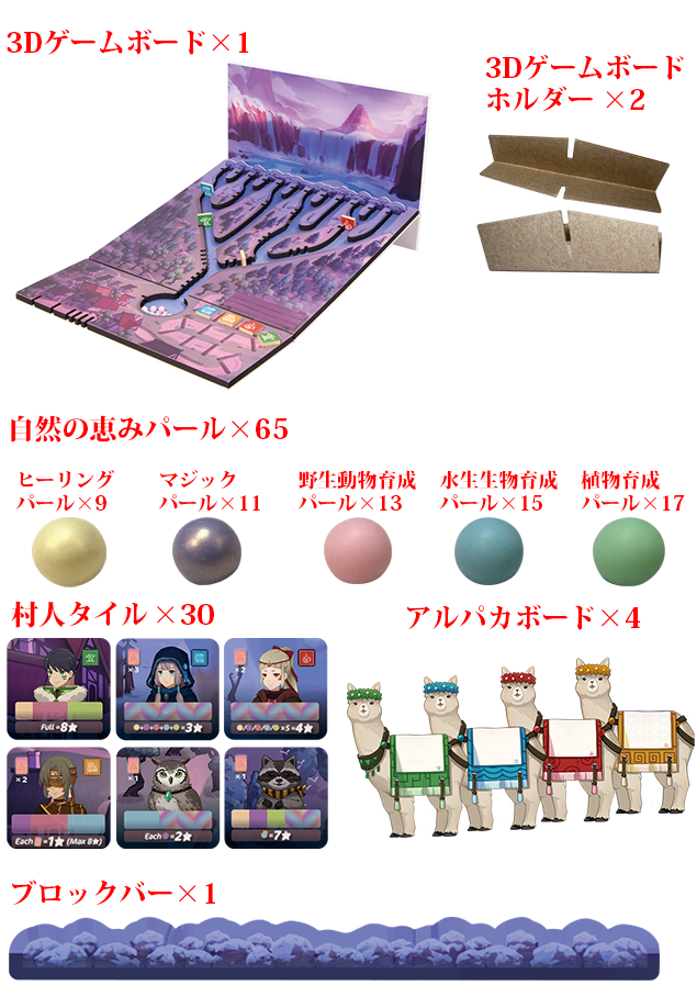 ② 美しい3Dゲームボードと高品質なコンポーネンツは、広げるだけでテーブルが賑やかに!