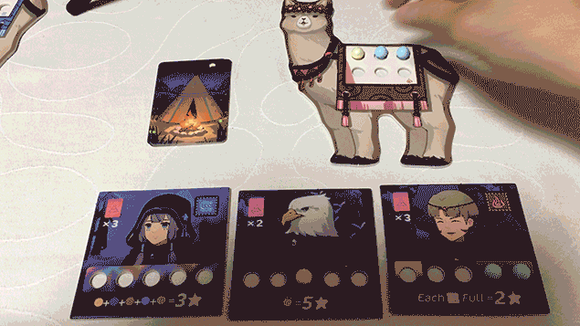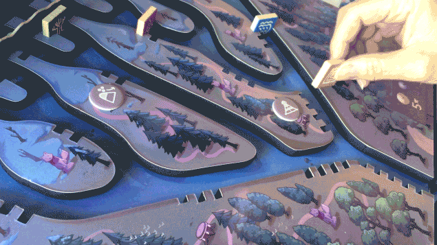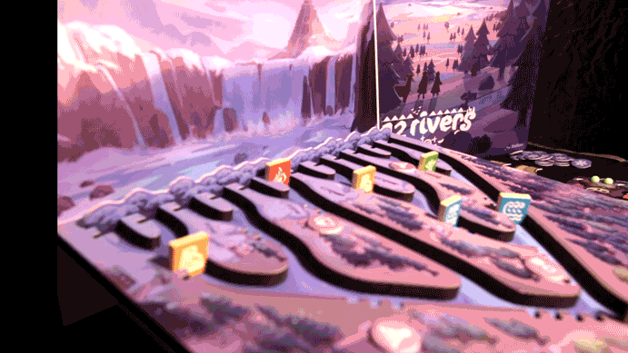 部族トークンを好きな場所に差し込みます。川の上流にいくほど、必要なキャンプカードの枚数は多くなります。