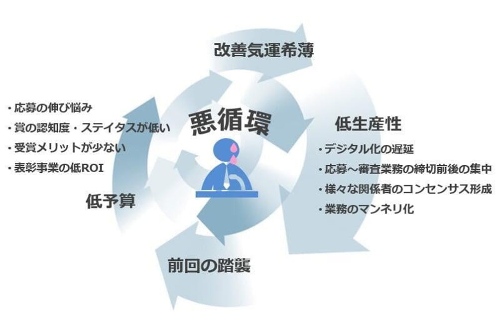 現状の表彰事業の多くは、低予算~改善気運希薄~低生産性~前回の踏襲 という悪循環に陥っています。
