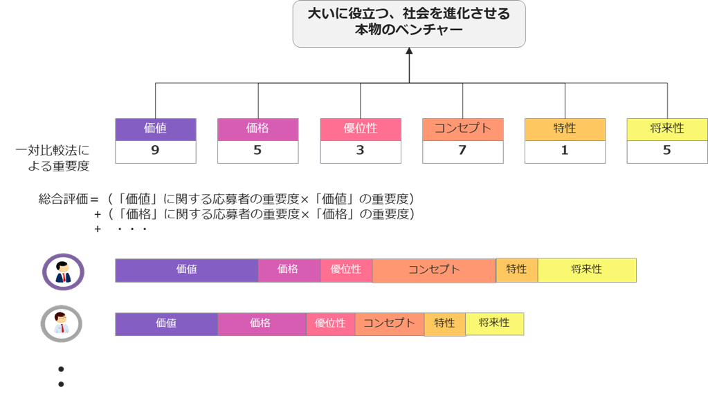 1. 審査員:実務家(同業者・コンサルタント・スポンサー等)/専門家(有識者・学者・評論家等)/ユーザー(社会人・若年者等)