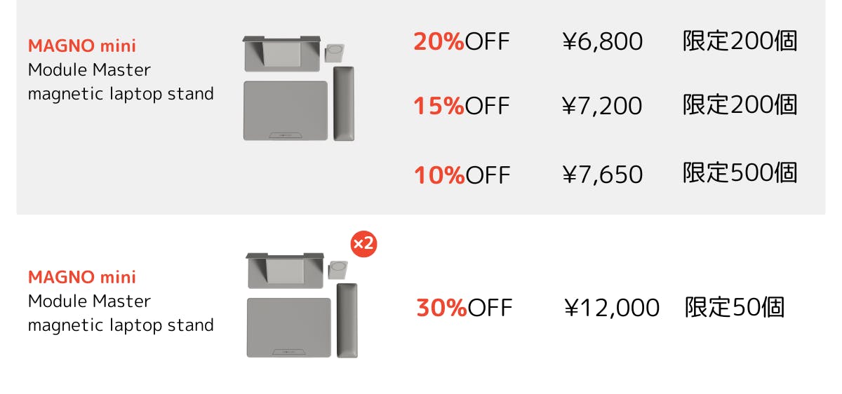 また、MAGNO miniのその他の魅力的なリターンもご用意しております。数に限りがございますので、お早めにご支援ください!