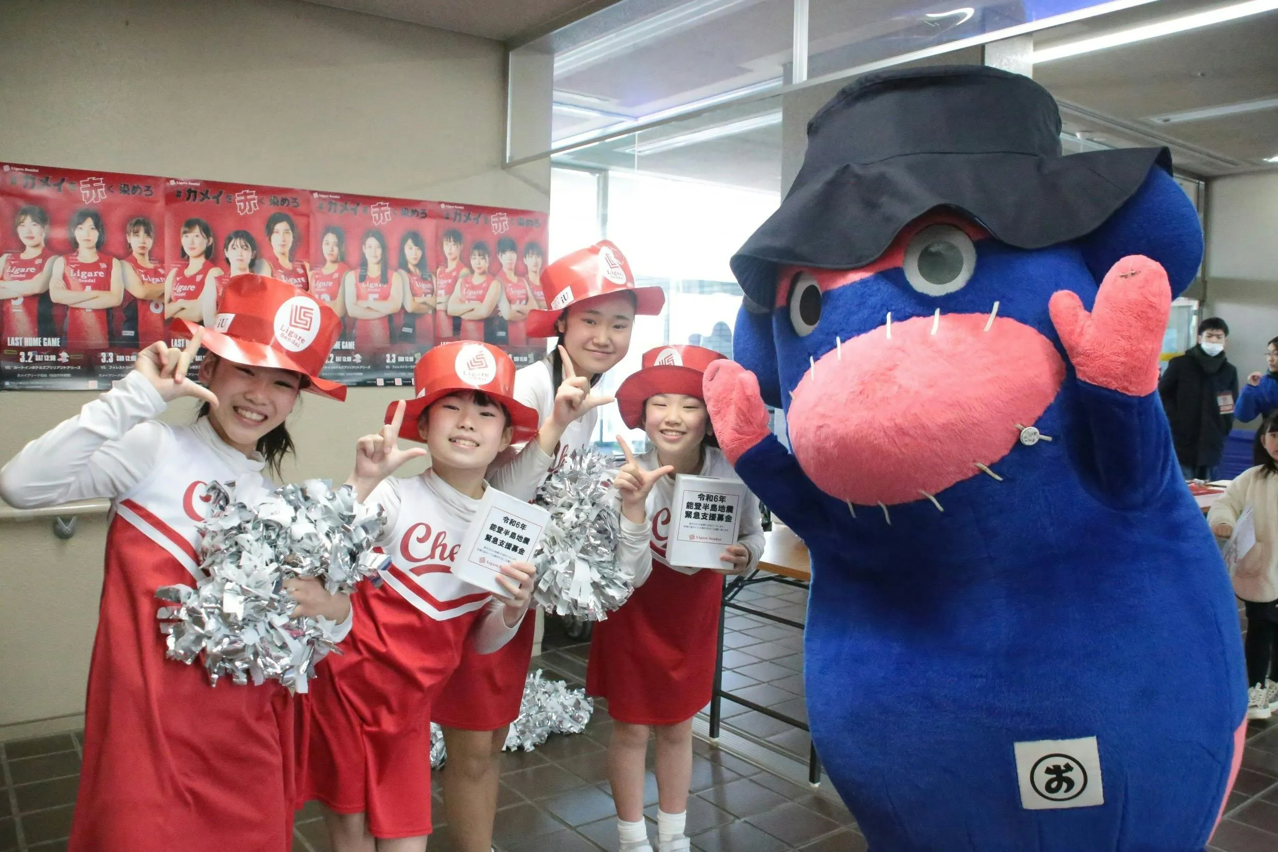 2024年3月にVリーグのリガーレ仙台さんの亀井アリーナでの試合や、Jリーグのベガルタ仙台さんのユアテックスタジアムでの試合で行われました。