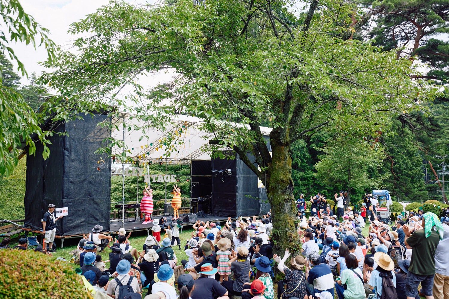 モーリーステージの音響、照明は自然エネルギー (野底川で生れた電力)を使用。 野底川小水力発電所にて発電した自然エネルギーで運行すること。また、サニーステージは太陽の光から 生まれた電力で音響、照明を表現します。