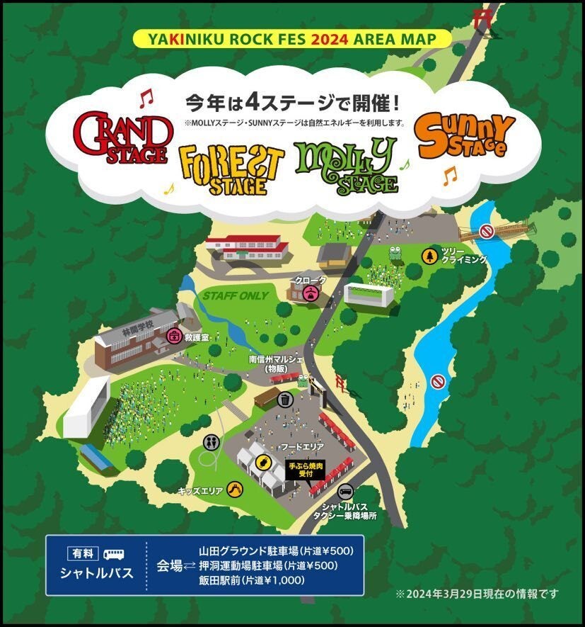 魂を揺さぶる歌声、着替え必須の汗だくステージ、多彩なアーティストによるライブで盛り上がることはもちろん、焼肉のディープスポット、飯田ならではのDJステージ付きBBQ会場あり、さらには、周りを見渡せば南アルプスの雄大な自然!