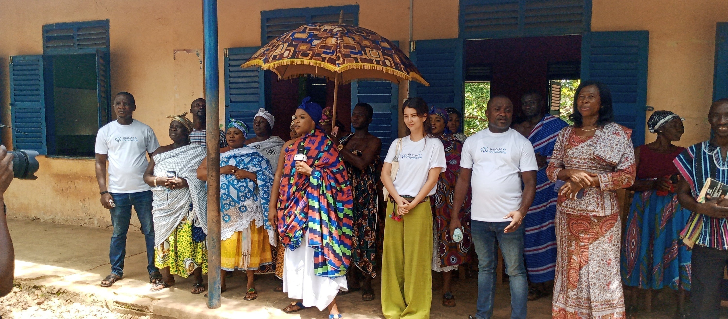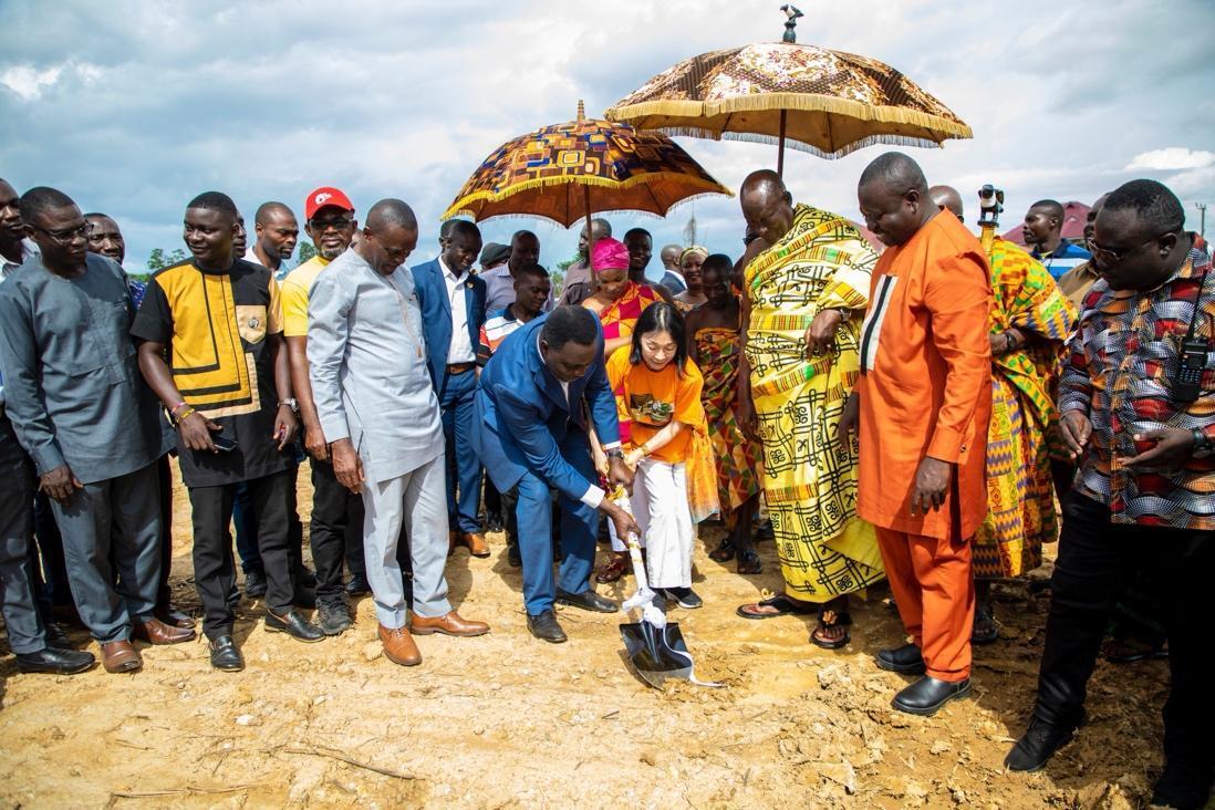 6月には理事長の鈴木が現地を視察し、マンソ・ヌクワンタの事業地で建設開始式典を開催しました。式典には、地元の人々約300人が参列し、地元の伝統的指導者オマンヘネ(Nana Bi Kusi Appiah/ナナ・ビー・クシ・アピア2世)、ガーナの教育大臣Dr. Yaw Osei Adutwum氏、地元選出の国会議員や鈴木も加わり、盛大な行事となりました!多数の地元メディアで報道され、多くの人々に本事業を発信しました。