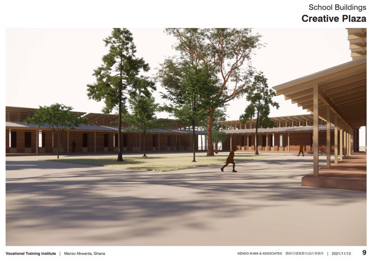 学校の設計は著名な建築家の隈研吾先生がボランティアで作成していただいたものです。現在は校舎の建設を行っていますが、地元の努力により、学生寮、カフェや中庭など学生たちが生き生きと生活でき、また村人の憩いの場となる環境を整備する一大プロジェクトになる可能性があります。隈研吾先生は、学生時代にガーナを含む北アフリカから西アフリカ諸国を車で縦断し、その経験が建築家としての「原点」となったそうです。著書の中で、アフリカに行くまでの準備の困難さ、アフリカで出会った人々との信頼関係の構築の仕方などがその後の先生のキャリアに影響を与えたとされています(隈研吾、2021)。今回の職業訓練校の設計について、失業にあえぐマンソ・ヌクワンタの若者のためにも、「恩返しのつもりです」と語っています。