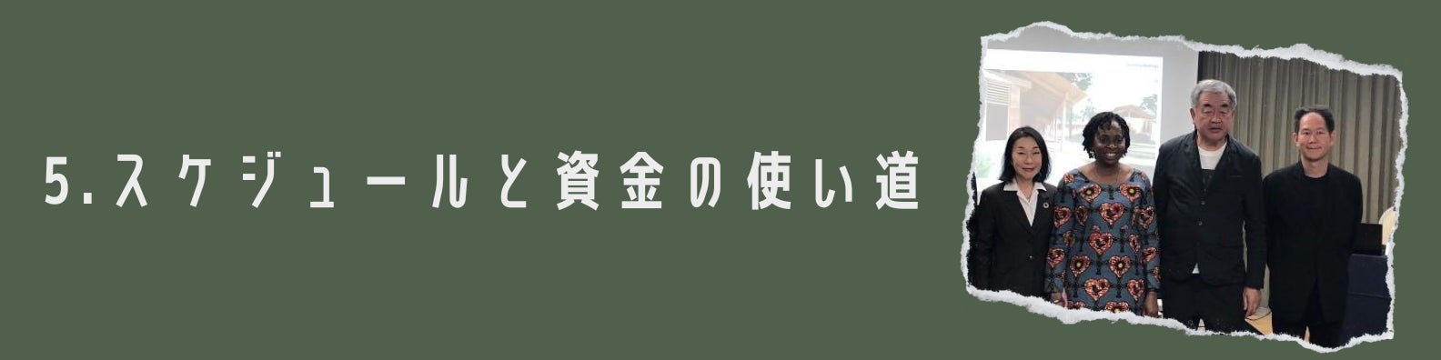 この職業訓練校の建設と運営はマンソ・ヌクワンタにとって未来への希望であり、隈研吾先生にとっては「原点」との対話であり、SPJにとっては「誰も取り残さない社会」の実現に向けての第一歩となります。そして、なによりここで学ぶ学生にとっては、職業訓練校での日々が自身の生活の礎になります。学生たちが集中して、スキルを習得できるためにも、金銭面での不安を取り除かなければなりません。皆様からのご支援と本クラウドファンディングについてご拡散をよろしくお願い申し上げます。今回頂いたお金は職業訓練校1期生の皆さんをサポートするためのお金となります。3年後をめどに、運営を安定させていく予定ですが、今後も皆様からのご協力が必要になることもあるかもしれません。今後とも本事業にご関心を頂ければ幸いです。