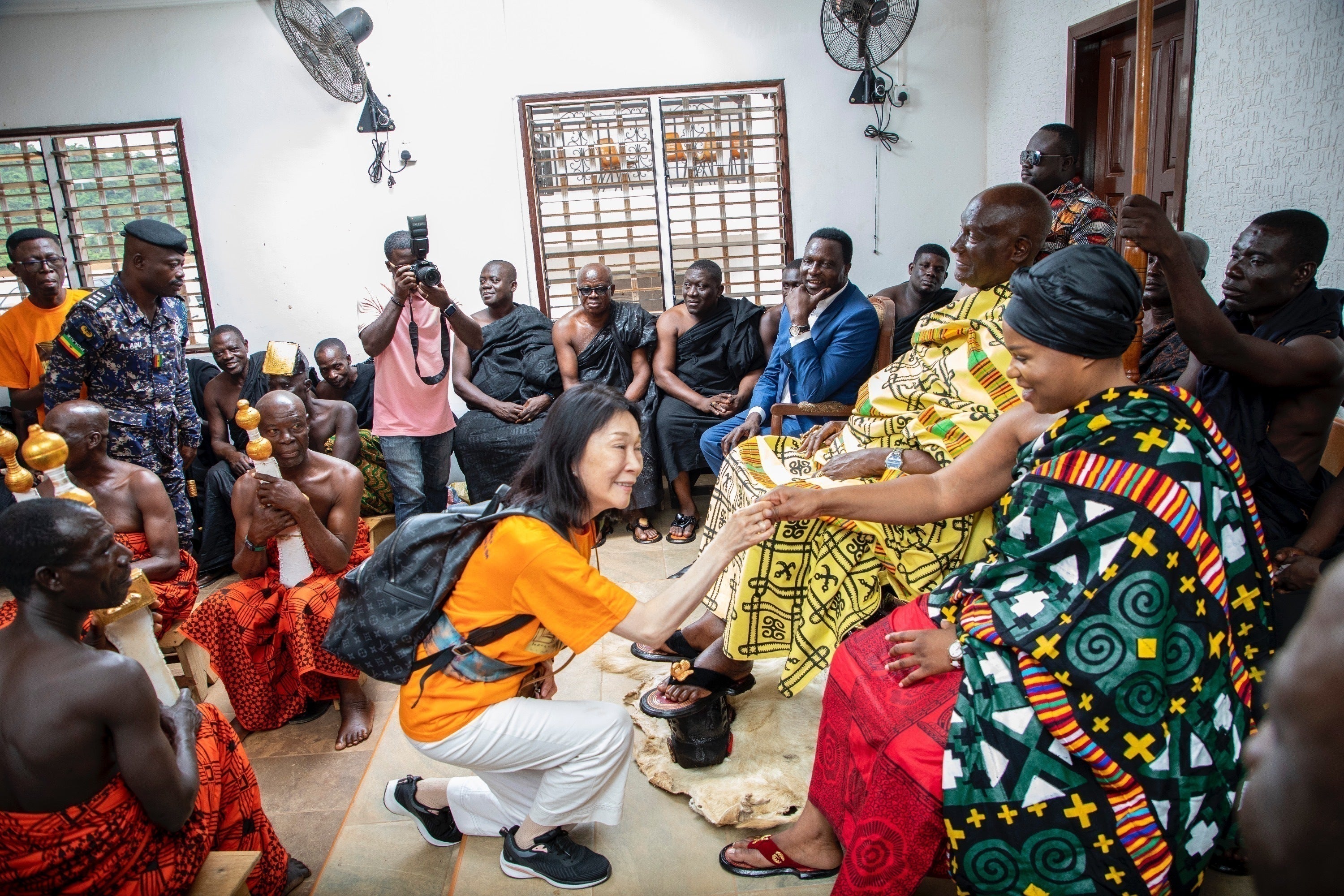 18世紀になると、ついにアサンテ王国が「天下統一」を果たします!余談ですが、アサンテ王は職業訓練校がある地域の指導者オマンへネの上に君臨します。そのため、理事長の鈴木も本事業の承認を求める為、ガーナ訪問時にアサンテ王に謁見しました。