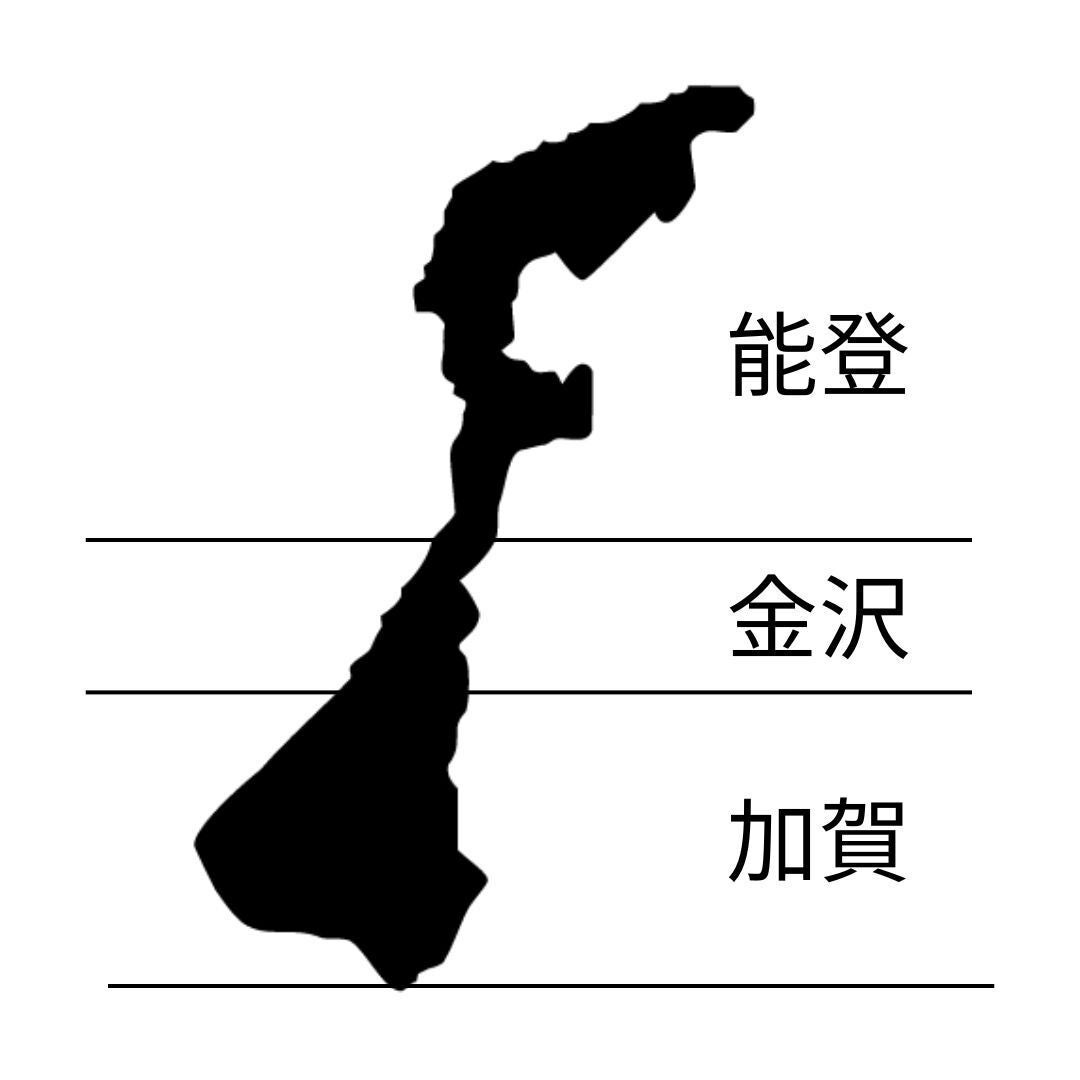 石川県は縦長な地形をしています。この石川県を3つの区域で分けてよく表現します。