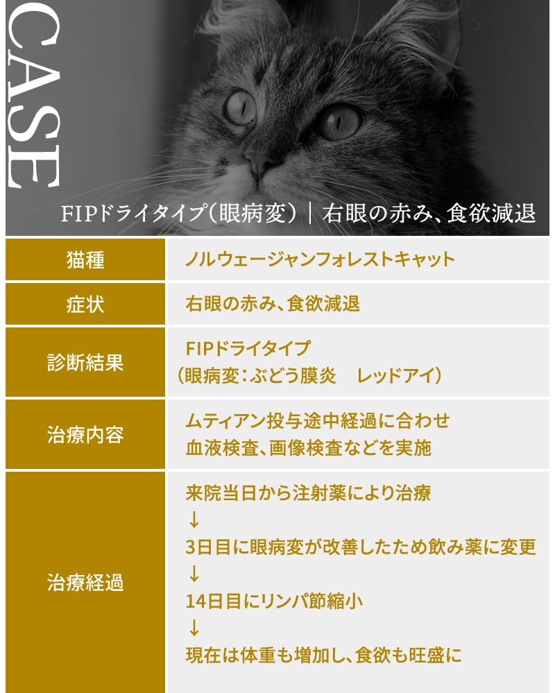 そんな中、私のHPのFIPに関するブログをご覧いただき、文字通り藁にもすがる思いで、3院目として当院にお越しいただきました。