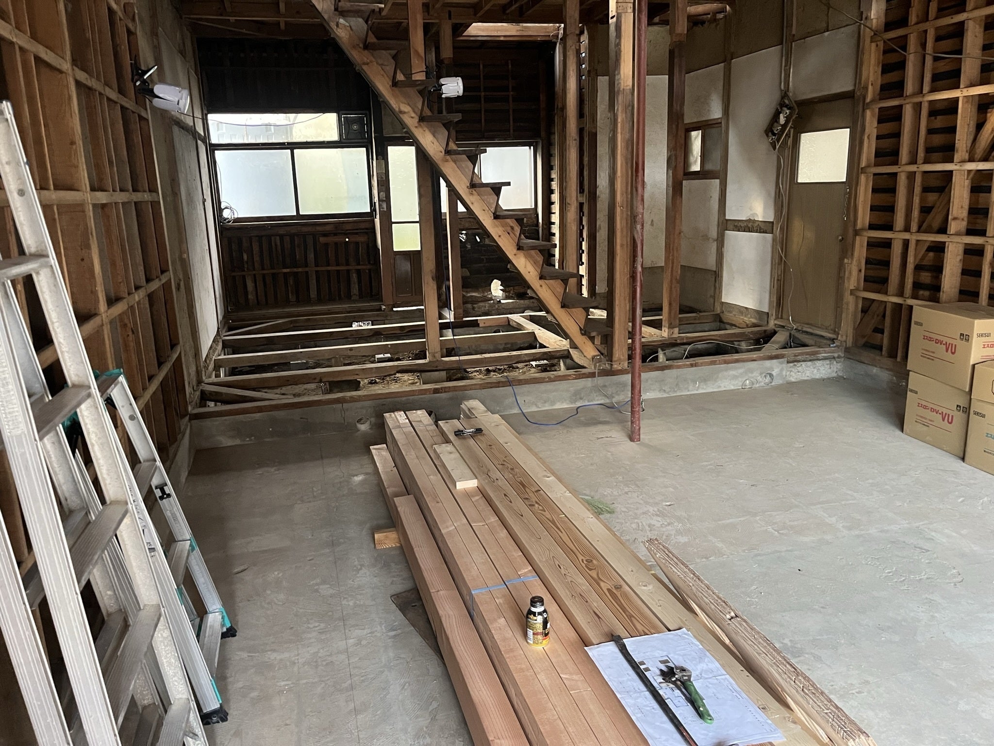 16年前まで骨董品店だったという店内から、カフェの雰囲気に合いそうな小物や端材を引き取り、自分たちでできるところは可能な限りDIYをして完成させていく予定です。