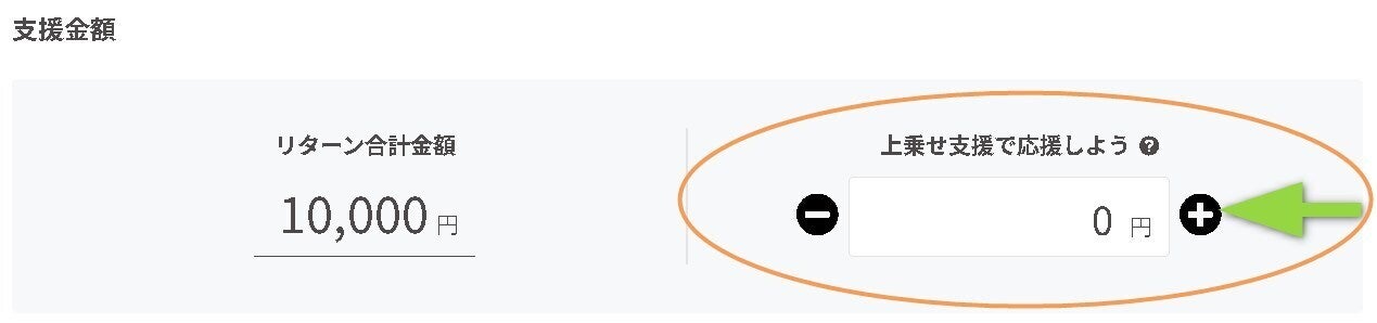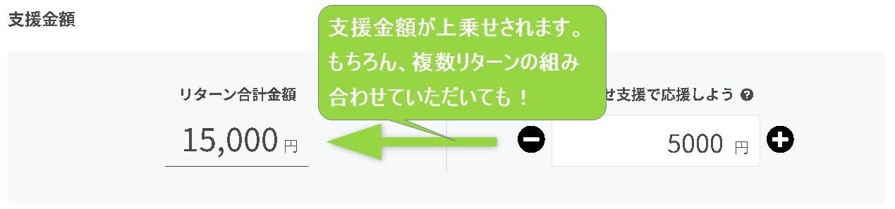 お気に入りのリターンに、上乗せ支援として金額を入力する事ができます。