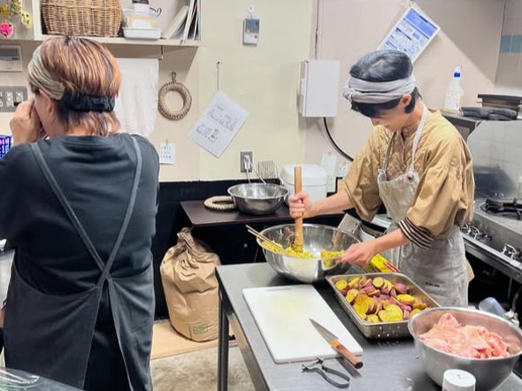 120食の仕込みも、3人でやれば楽しい時間です。お店オープンまでに、こうして経験させてもらえる事に感謝。
