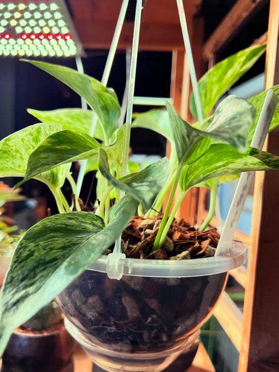 もりたうつわ製作所の森田さんに、お店に飾る植物を透明吊り鉢に植え替えしてもらいました。