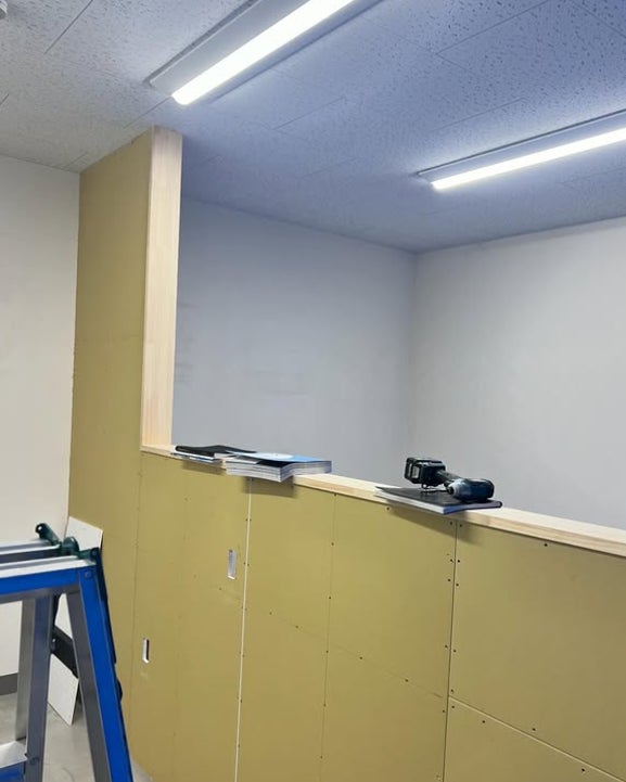 ブルーシートで中は見る事が出来ないので、中の様子をチラリと...。キッチンとの間仕切りの壁の工事中です。工事の事が何も分からない私に丁寧に説明をしてくれ、親身に相談にのってくださった、西工務店様 @nishikoumuten_24本当に、ありがとうございます。若い職人さんも来ていて、よく聞くと三男と知り合いだったようで驚きました!