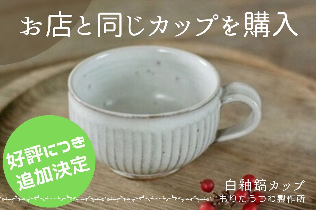 皆様の熱いご支援により、限定数に達したもりたうつわ製作所の白釉鎬カップですが、森田さんのご厚意でリターン用に追加制作していただけることになりました。初回リターンよりお届けにお時間をいただくことになりますが、この機会にぜひご支援をいただければ幸いです!引き続き、皆様の応援をよろしくお願いいたします。