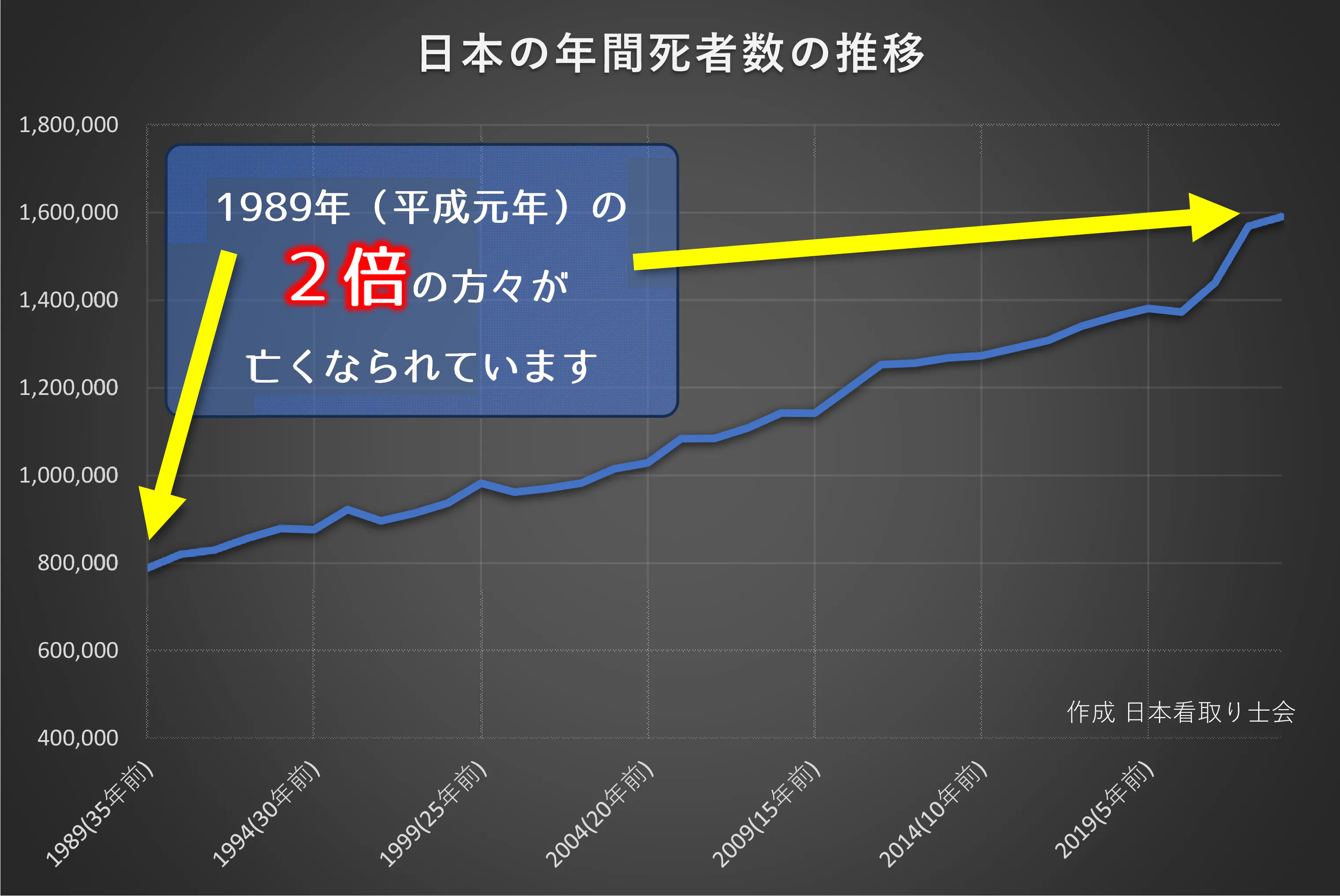 日本は、人類史上類を見ない「多死社会」に突入しています。 昨年2023年には、戦後最多を更新した2022年の156万人をさらに更新し、159万人の方々が亡くなられました。そして、この数は今後も増加していくと予想されています。